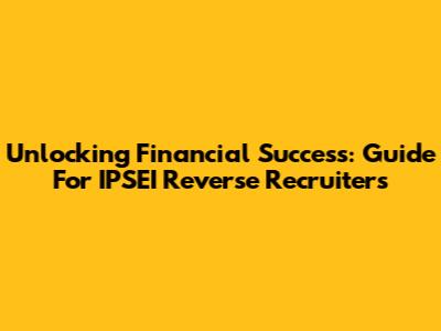 Unlocking Financial Success: Guide For IPSEI Reverse Recruiters