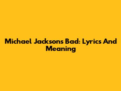 Michael Jackson's Bad: Lyrics And Meaning