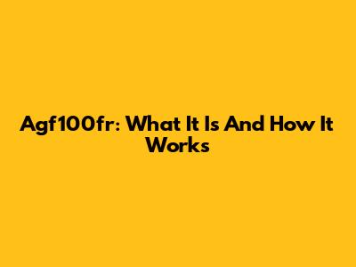 Agf100fr: What It Is And How It Works