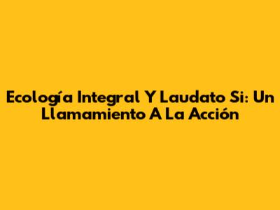 Ecología Integral Y Laudato Si: Un Llamamiento A La Acción