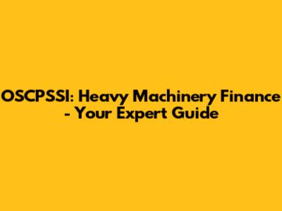 OSCPSSI: Heavy Machinery Finance - Your Expert Guide