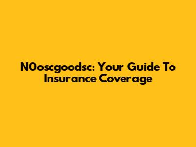 N0oscgoodsc: Your Guide To Insurance Coverage