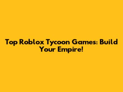 Top Roblox Tycoon Games: Build Your Empire!