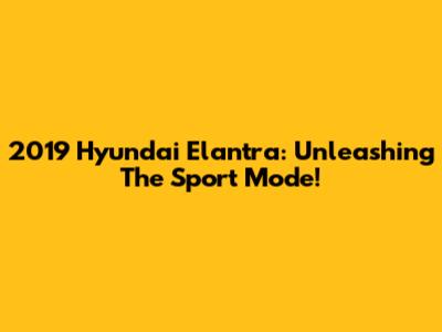 2019 Hyundai Elantra: Unleashing The Sport Mode!