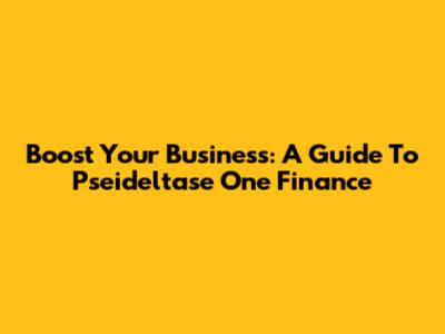 Boost Your Business: A Guide To Pseideltase One Finance