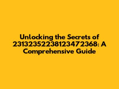 Navigating the complex world of seemingly random numbers can be daunting, but fear not, my friends! Today, we're diving deep into the enigmatic realm of 23132352238123472368. This isn't just a string of digits; it's a key, a code, a potential gateway to understanding something bigger. Whether you've stumbled upon this number in a cryptic message, a forgotten file, or simply out of curiosity, this guide is designed to illuminate its possible meanings and applications. We'll explore its mathematical properties, potential uses as an identifier, and even its symbolic significance. Buckle up, because we're about to embark on a journey to decipher the mysteries behind this unique numerical sequence.