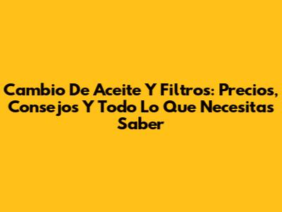 Cambio De Aceite Y Filtros: Precios, Consejos Y Todo Lo Que Necesitas Saber