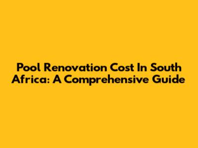 Pool Renovation Cost In South Africa: A Comprehensive Guide