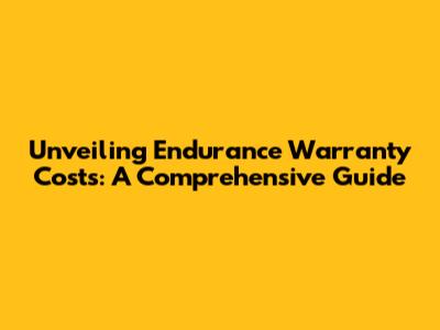 Unveiling Endurance Warranty Costs: A Comprehensive Guide