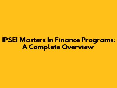 IPSEI Masters In Finance Programs: A Complete Overview